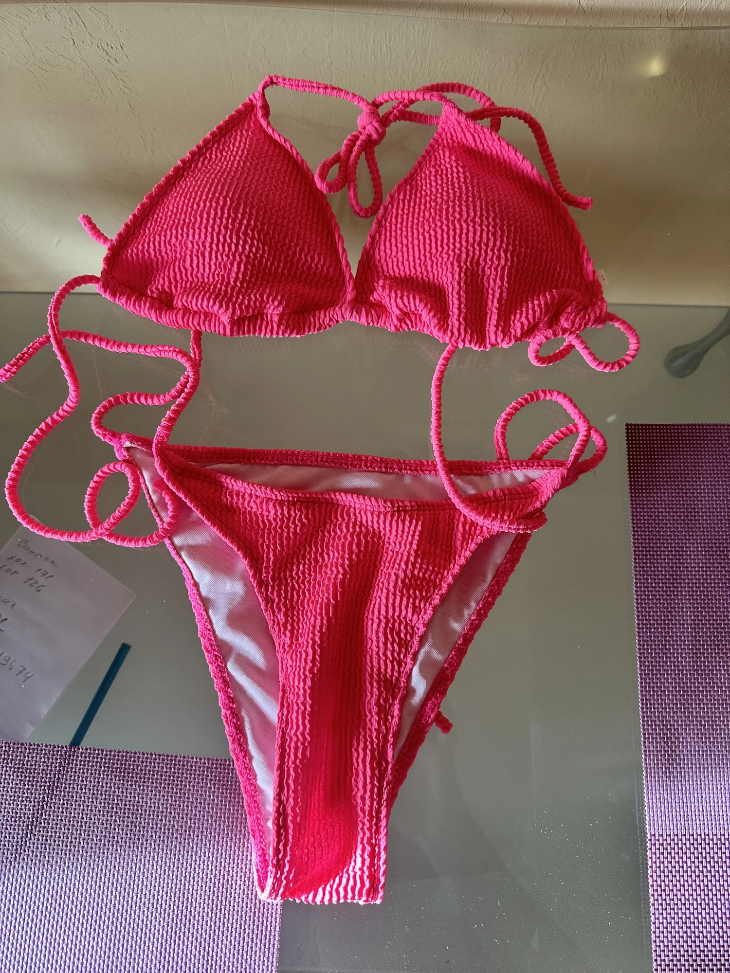 - Design: Halter triangle bikini top, tie at neck and back, underwire push up padded bras, fashion textured fabric. solid color, sexy brazilian cheeky thong bikini bottom with tie two sides, brings you closer fitting, ultra chic and adorable.